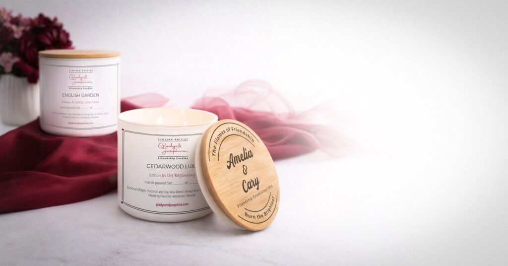 Share the joy of your friendship with matching candles designed to honor your unique bond. Custom engraved with your names and the date your friendship began. A perfect tribute to the connection you share. That’s what makes owning a Gladys and Josephine candle so special!